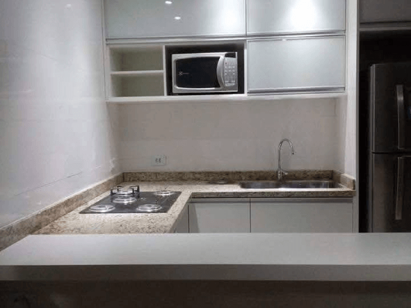 O acabamento em amarelo vibrante, equilibrado pelo tom amadeirado, cria um ambiente cheio de vida e modernidade. Mais do que armários, criamos uma solução de design inteligente que se adapta perfeitamente à arquitetura do espaço, com funcionalidade e um acabamento impecável.